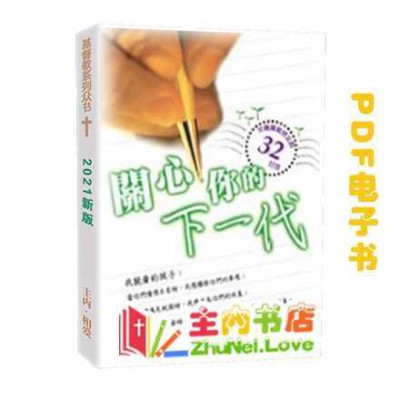 这是PDF电子书! 基督教电子书下载 主内电子书分享。 为方便检索与传播,本站使用电商格式展示,所有书籍价格为0,全部免费。本站所有书籍皆为主内肢体准备,免费供应。若有感动,可小额奉献,支持事工。 主内书店微信:ZhuNei-Love 或主内书店QQ:123880018 本电子书简介:本书简介:谨以此书,献给:那些为了信仰而无所畏惧、宁死不屈、宁愿为主作见证而不逃避的勇士。因为他们本是这个世界不配有的人。 特别申明:1,下单时,请在订单留言里,留下你的E-mail,我们会24小时内发送邮件。 2,PDF电子书,只适用于个人手机阅读,电脑阅读等。 3,本书有实物书,有电子书,本页面为电子书。 4,电子书有薄水印,不影响阅读。 实物书价格 = 电子书价格 x 5 《关心你的下一代》电子书-婚姻家庭 李鸿志 7.85万字